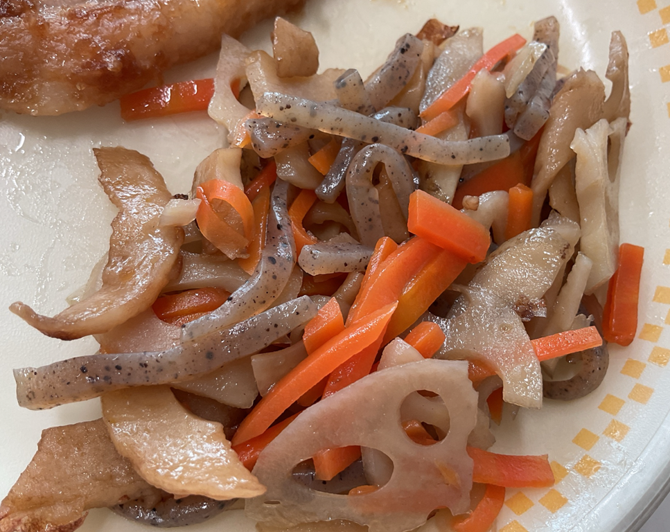 ☆ 「きんぴら」は、人参、ごぼう、こんにゃくなどを合わせました。しょう油の香ばしい香りがごはんによく合いました。