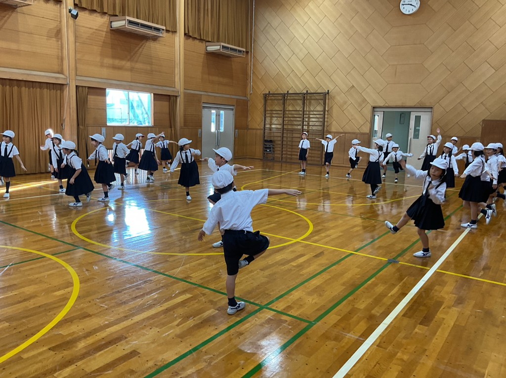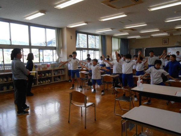3年生が体育で通常のドッジから「英語ドッジ」に切り替えて見せてくれたり、授業中の4年生が英語で挨拶をしてくれたりしました。