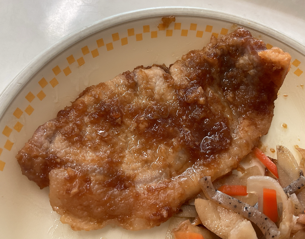☆ 「豚肉のアップルソース」は、オーブンで焼いた豚肉にりんごや生姜、しょう油を合わせて作ったソースをからめてつくります。りんごの甘酸っぱさがおいしいソースになりました。今はお店で年中ならんでいる「りんご」ですが、旬をむかえる季節は10月ごろからの秋口です。りんごは栄養価が高く、ビタミンやミネラルが豊富です。ヨーロッパやアメリカでは「1日1個のりんごは医者を遠ざける」といわれてきたそうです。