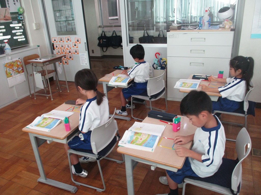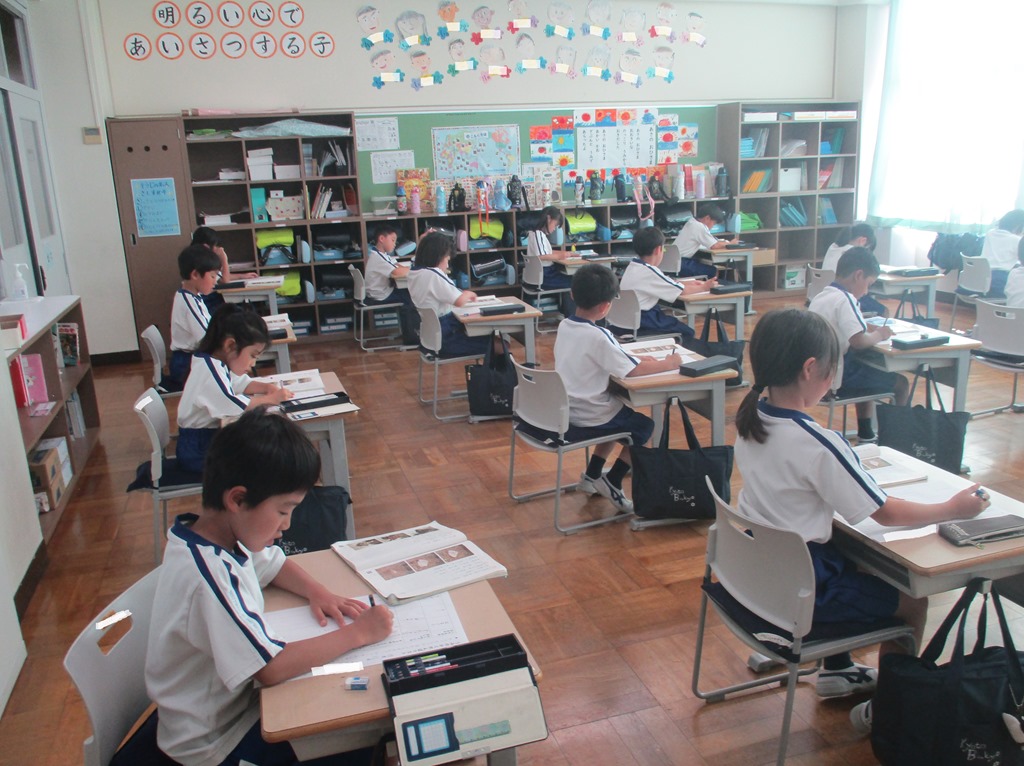 1枚は教科書を見ながら、読み取ったことを表にまとめるテストで、もう1枚はカラーテストです。