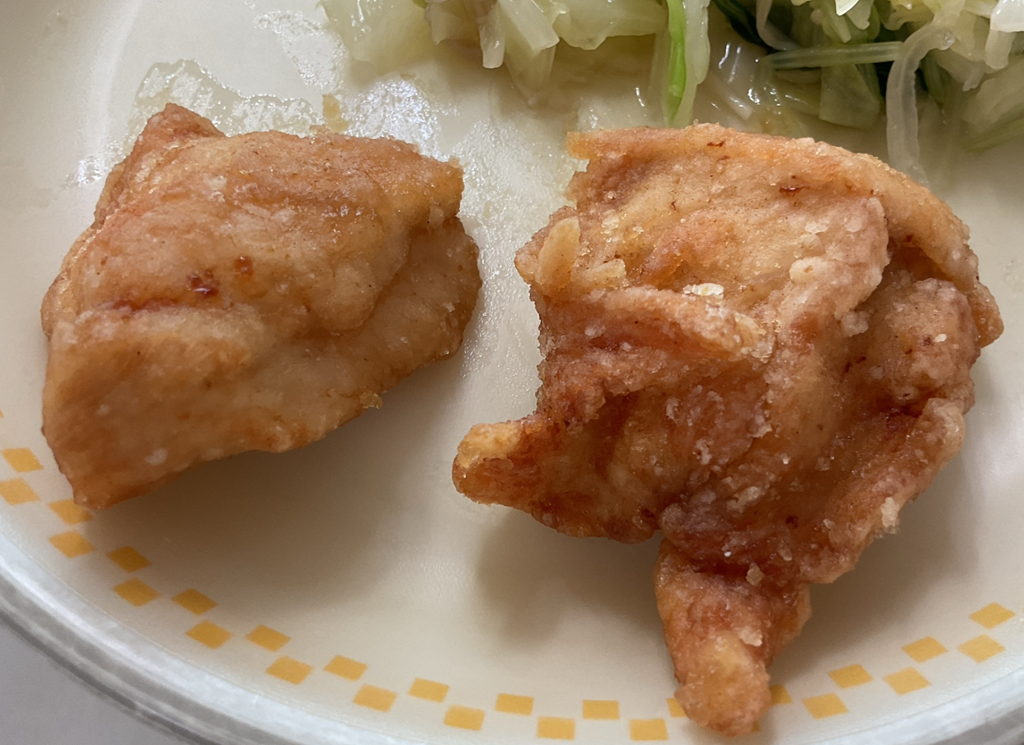 ☆ 「とりの唐揚げレモンだれ」は、揚げた鶏肉に甘酸っぱいたれをからませます。唐揚げの表面がカリッとしっとりしておいしく仕上がりました。