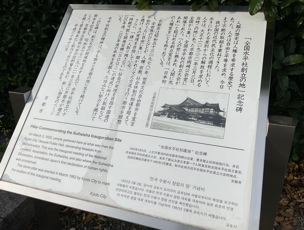 時代は大正時代。忘れてはいけないのが、ここが全国水平社創立の地だということです。岡崎公会堂がありました。