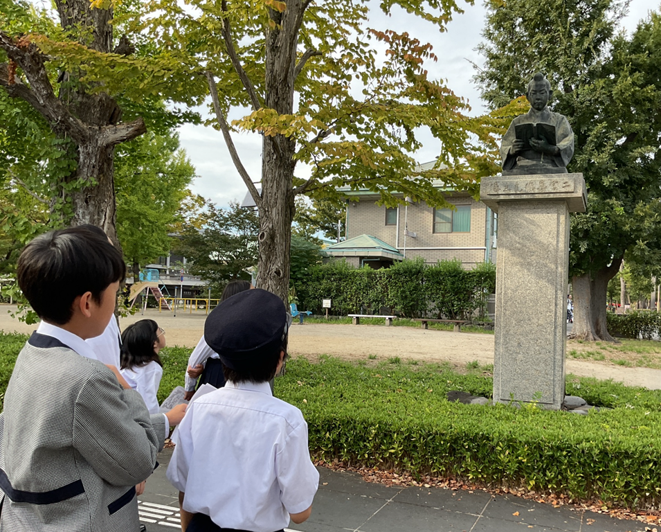 また、校長先生がよくお話される二宮尊徳像を見ました。みんなで「積小為大」の言葉を思い出しました。