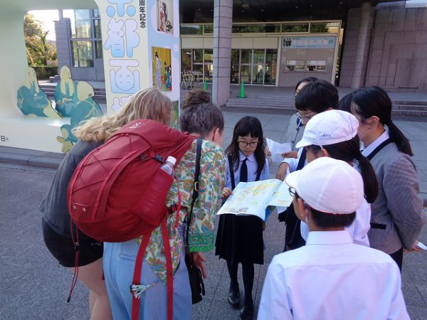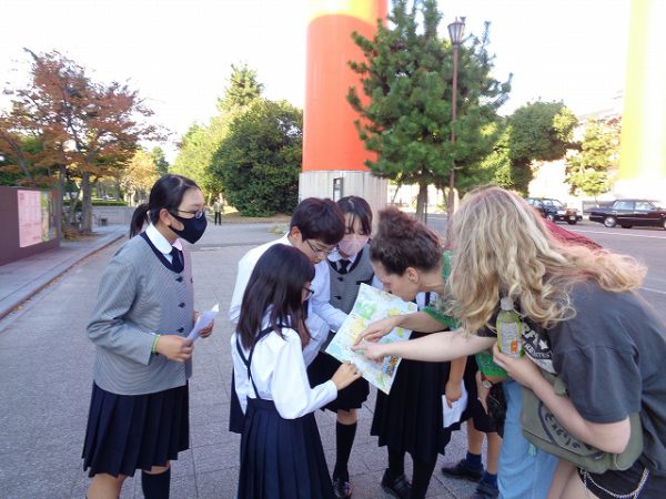 校内で英会話を練習してから、出発しました。