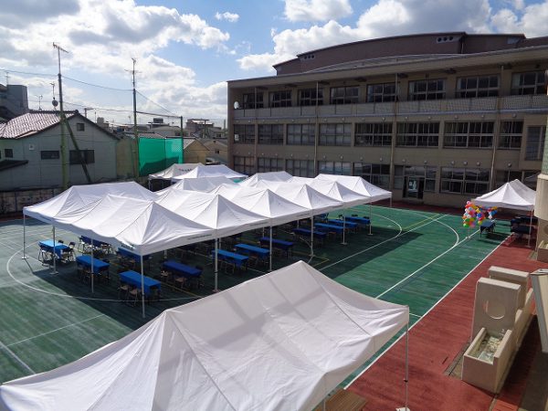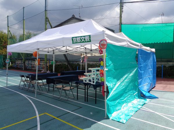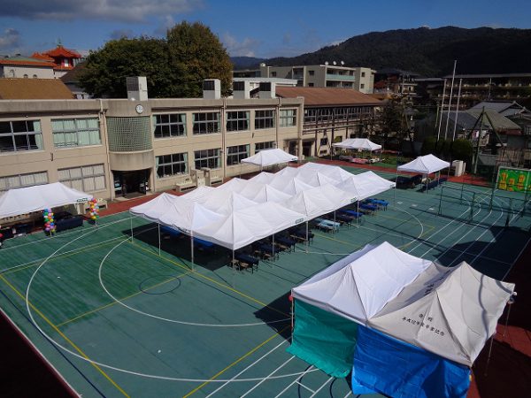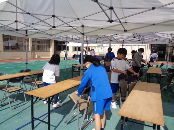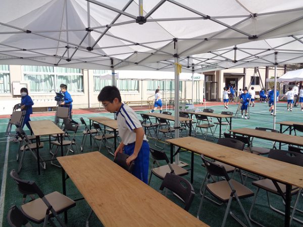 今日の3校時は、5,6年生が休憩用テント内設営のお手伝いをしてくれました。