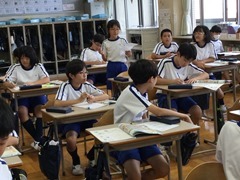 教科書のイラストをもとにして、私たちの生活の場で、お金を使っている場面を見つけ出し、発表するところから学習が始まりました。