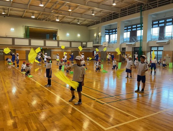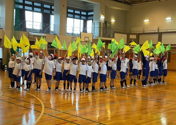 初めはなかなか揃わなかった旗の演技も、高さやタイミングが揃ってくるとさらに迫力が増します。
