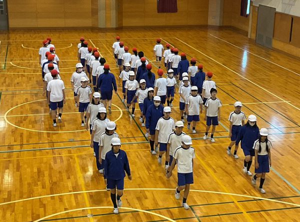 今日は雨天のため、中高の体育館をお借りして、短い時間でしたが、運動会前最後の練習を行いました。