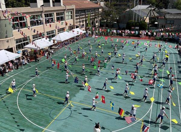幼小中高大と、学園全体でウェーブしている120周年記念ダンスを、小学校では運動会で熱演しました!