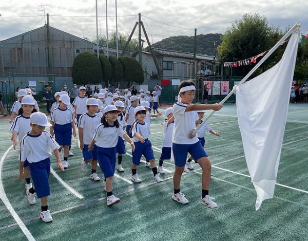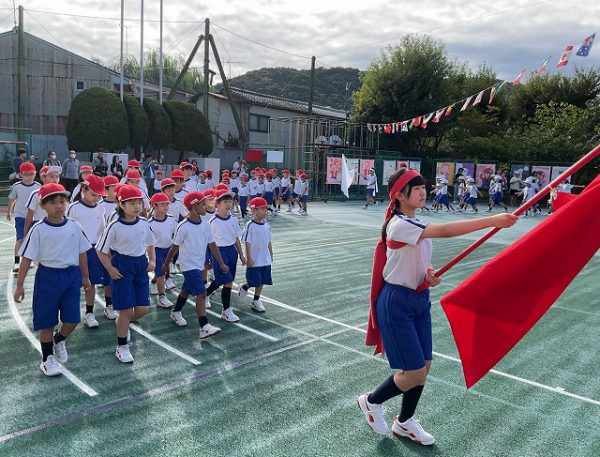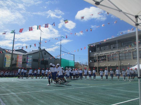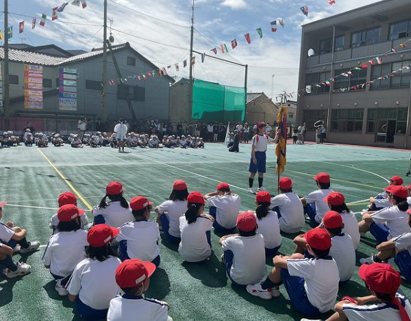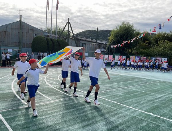 開会式では、児童会本部が児童会旗を持って、先頭を歩きます。