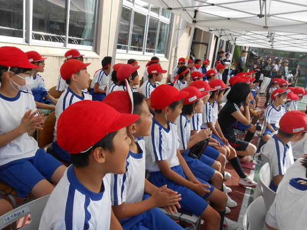 みんな、声援を一生懸命送りました。英語のフレーズもあり、盛り上がりました!