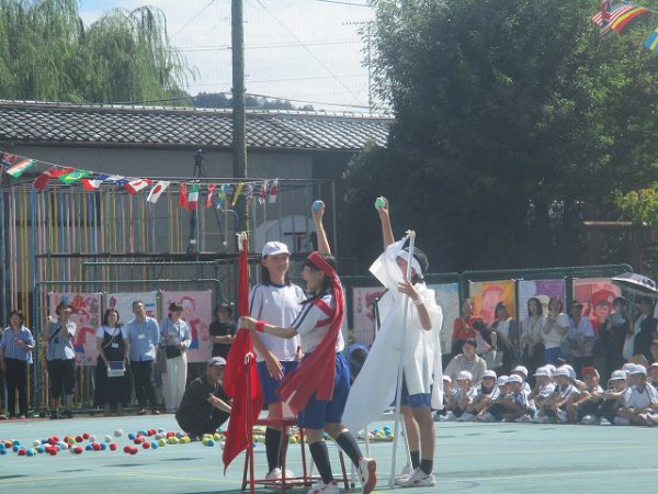 児童会の玉入れが、運動会のフィナーレを飾りました。