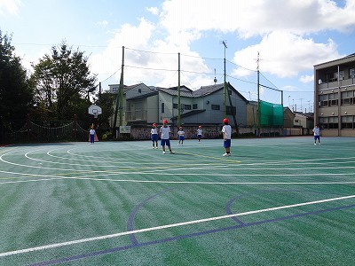 ボールを持っていない人は、持っている人に「パス」と声を出して、パスをもらいます。