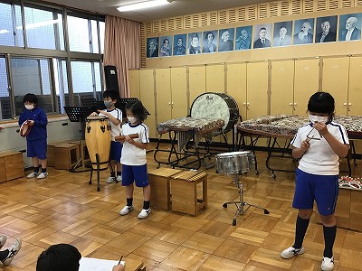 鈴やタンブリンの枠を打つ音と、本来の打ち方を交互にしたり、コンガで低音を響かせたりと、見ている私たちを楽しませてくれた発表ばかりでした。