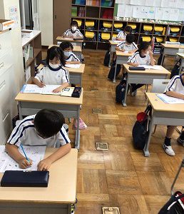 言葉のまとまり毎に書き写すのがポイントです。3時間目の体育の後でしたが、気持ちを切り替えて集中して書くことができました。