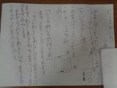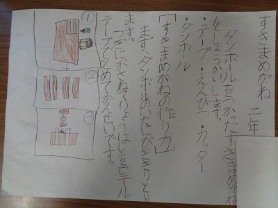 設計図には、おもちゃの材料や作り方、遊び方などを書いています。