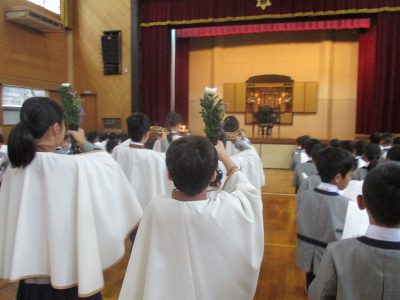 本校からは1年生二人が市長賞と動物園長賞を。3年生二人が教育長賞と入選で、賞を頂きました。先週末に京都市動物園で授賞式がありましたが、今日あらためて全校生の前で、4人の表彰披露をしました。