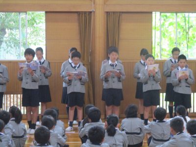 10/10水【礼拝・表彰と音読・応援団・英語週間・給食・委員会】