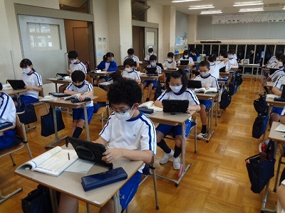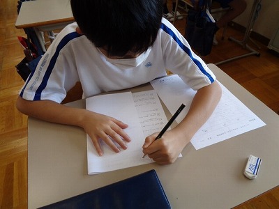 少し時間が残ったので、熟語の学習をしました。対義語や類義語、同じ部首を持った漢字などを見つける問題です。関心を持って取り組んでいました。