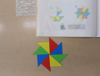 次は、教科書に載っている山や家、船、風車などの形を作ることに挑戦しました。