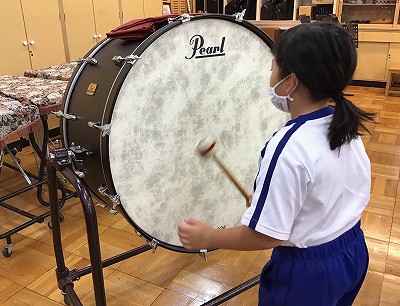 チャイコフスキーの「こうしんきょく」に合わせて、“歩いて回る打楽器打ち”を行っています。