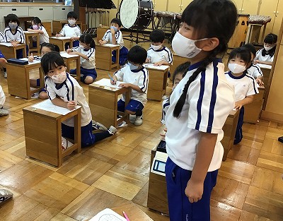 打ち方や鳴らし方のおさらいをしながら、プリントに記入してもらいました。