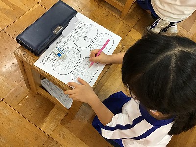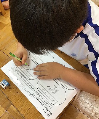 明日は、少しレベルを上げて、影絵の形を見ながら色板を並べる学習に取り組みます。
