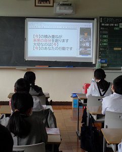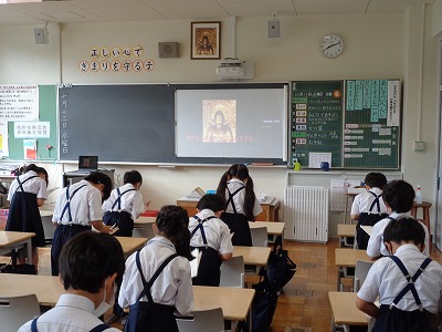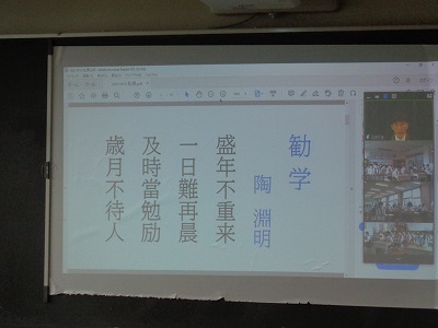「元気な時期はあまり長くありません。今できるときに勉学に励みましょう。年月は待ってくれません。今できることを一生けん命頑張りましょう。」とお話されました。1700年ほど前の詩です。今の私達と同じように、昔の方も時間が過ぎるのは早いと感じていたのですね。