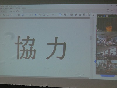 そこでポイントが「協力」です。「協」の字は、3つの力に、さらに力が合わさっています。みんなが協力できる学級を目指して、一人ひとりの持っている力を合わせることが、大きな力となっていきます。