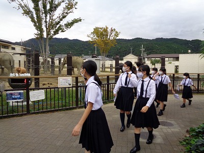 6時間目、さっそく現地へフィールドワーク! 目指すは動物園。広大な法勝寺を感じながら散策しました。疏水の向こうに観覧車が見えます。そこを中心にして、広い敷地で塔が建っている様子を遠目にイメージする子ども達。