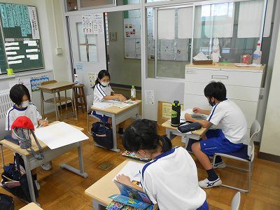 静かに学校生活の一日が始まりました。身支度・整理整頓・学習の準備を済ませて、足の裏を床につけ姿勢よく待つことができています。よい一日のスタートが切れました。