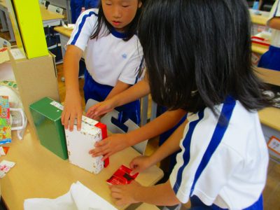 今日の生活科は、友達の「おもちゃの工夫」を見つける学習を行いました。