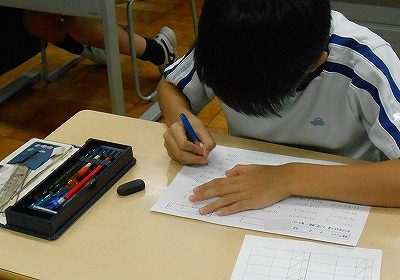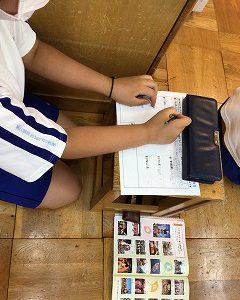 計算力アップのために、くり返しの計算練習は欠かせません!記録している計算カードもどんどん埋まってきて、記録の変化を感じ取ることができます。あまりのあるわり算は、50問1分台を目指してがんばります!