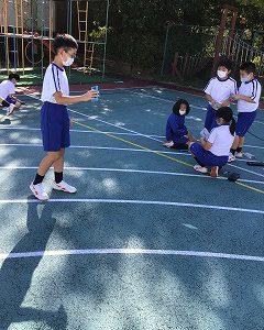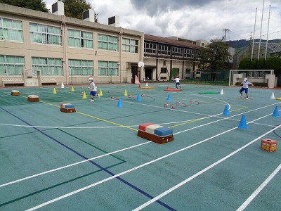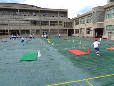 学年体育では、徒競走と障害物リレーの練習をしました。