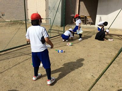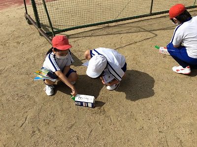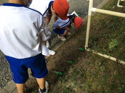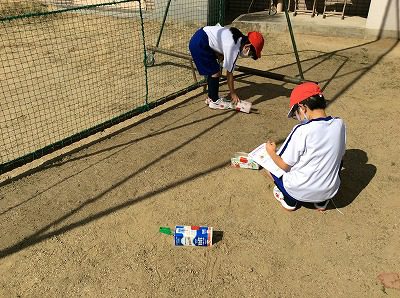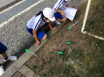 理科では、午前と午後の地面の温度を調べる実験のために外へ出ました。