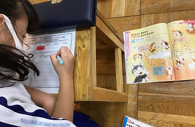 この「おどるこねこ」の最後には、犬が登場(?!)するのです。来週は、その場面まで進みます。1年キッズのみんなが、どんな色を選んでくれるのか…楽しみです。