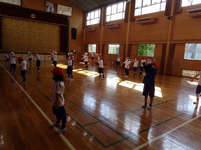 その後、体育館で曲の冒頭部分を踊ってみました。