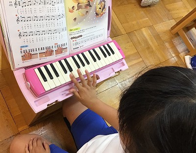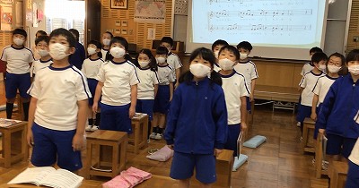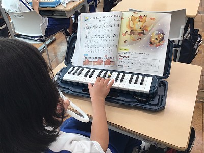 そして、「♪こぎつね」の鍵ハモ奏の練習です。「ドレミ…」での歌唱は、ばっちり!