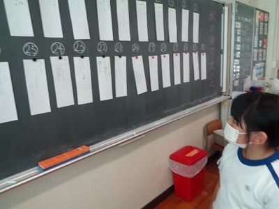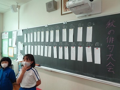 今日までに子どもたちは、秋といえば何を思い浮かべるかを考えて、十七音に表していました。