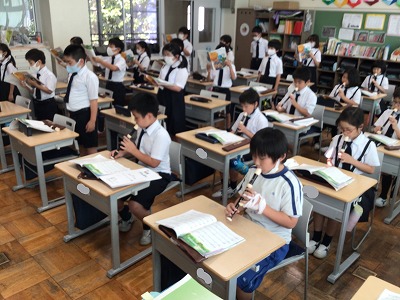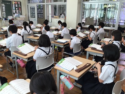 リコーダー奏と歌唱がきれいに重なって、リズミカルな歌と流れるような旋律が同時に聞こえてきます。自信を付けてきたみんなの横顔が印象的です。