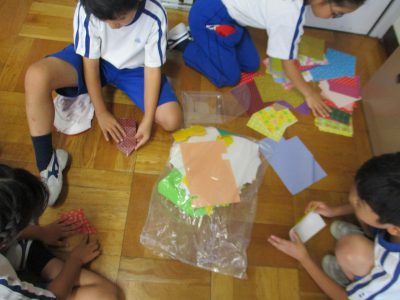 雨の朝の一番仕事は「れんげ班全員集合」で、班のめあてを確かめる会に参加しました。