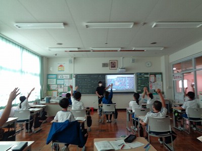 グーグルマップを使って、鮮やかな色の文教小学校グラウンドから、少しずつ拡大しながら、いくつかのオリジナル面積問題に答えた子ども達。最終的には、西は烏丸通、南は五条通、北は二条通、東は・・・の区域面積の答えを出したりしました。