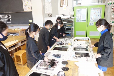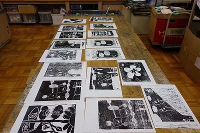 一回刷ってから、その感じを確認して、また彫り直す児童が何人もいました。来週には全員が刷り終わる予定です。