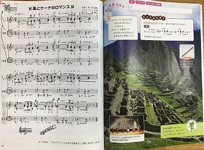 教科書には、「風とケーナのロマンス」という、フォルクローレを感じる曲が紹介されています。