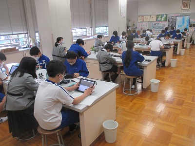 6年生全員、調べ学習に興味を持って取り組んでいます。