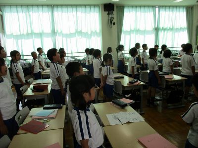 実は、明後日の「月かげ祭」オープニング前に、中学高等学校の体育館で、中高の吹奏楽部のステージがあります。その時に、わずかな時間ですが、3年生全員が前に出て、吹奏楽部の演奏に合わせて発表します。