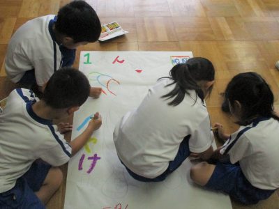 先週にひき続き、各色で交代しながら、応援ポスター作りに取り組んでいます。