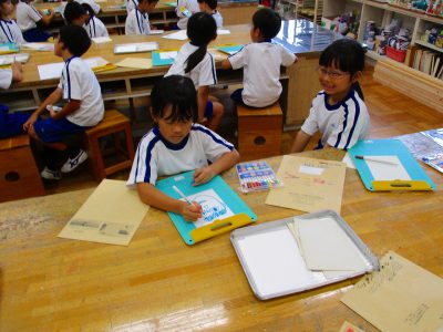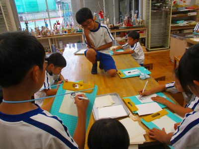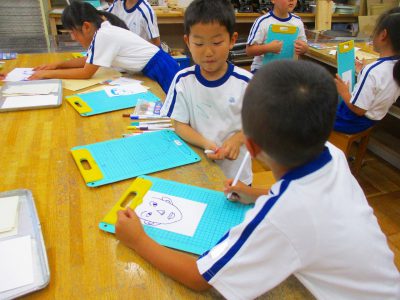 2年生の図工は、前回に続いてクロッキーです。まずウォーミングアップとして、お隣さんの顔を描きます。もうみんな慣れたものです!前回の時間より早く、さっさと描いていました。