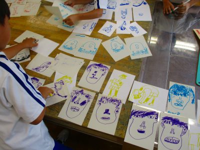 10/2月「2年図工科【たくさんたくさん顔を描く】」