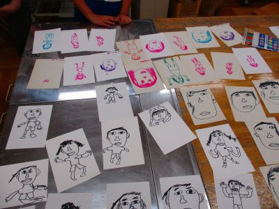 最後に、前回の作品も合わせて机に並べました!たくさんの顔が並んで、みんな一生懸命、数を数えていました。